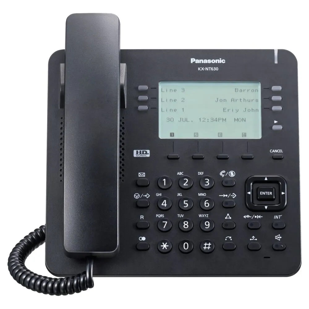 The Panasonic KX-NT630 is an easy to use 6-line business IP phone complete with large monochrome display, 24 programmable keys, dual Gigabit Ethernet ports and busy light field.